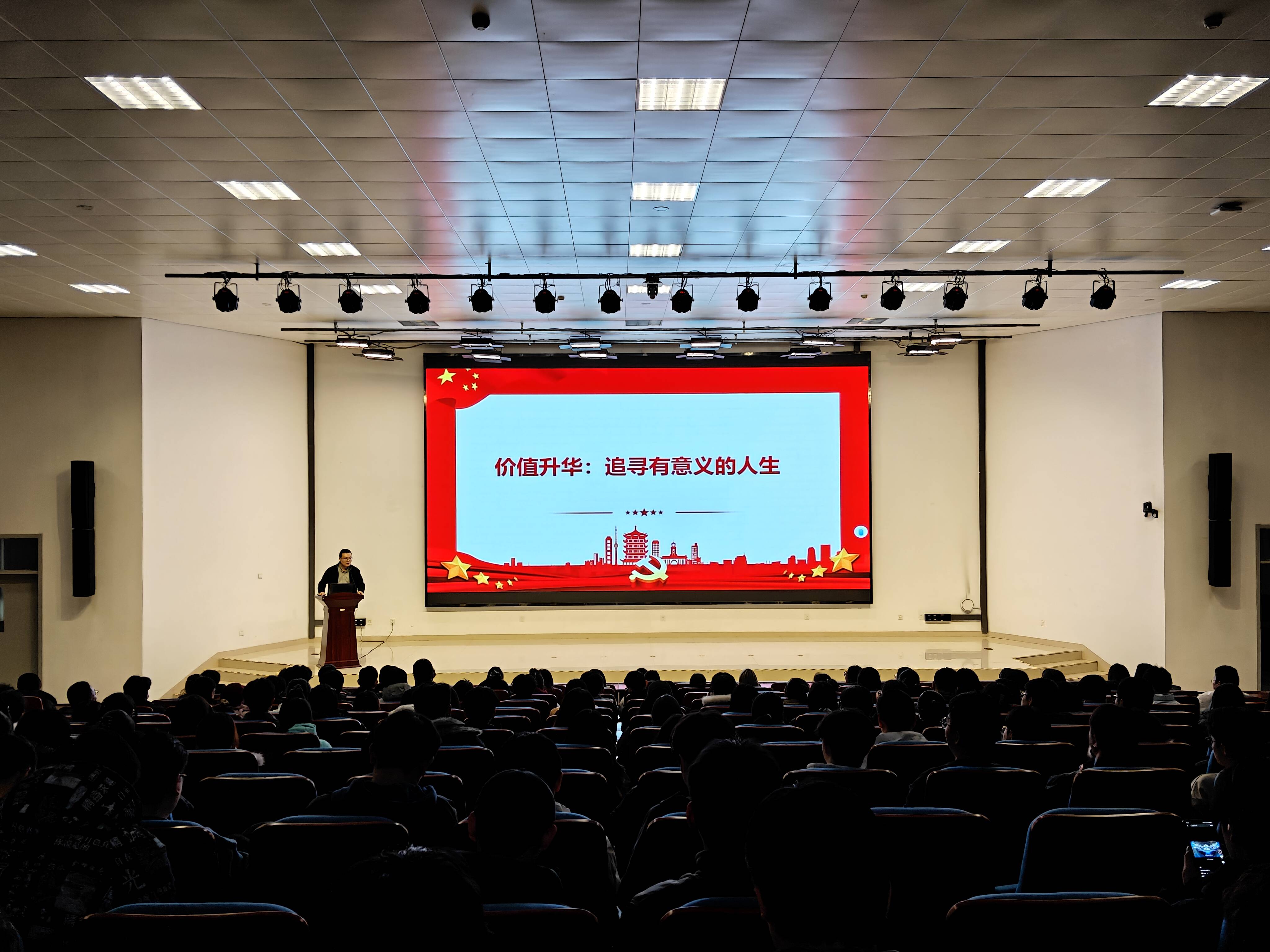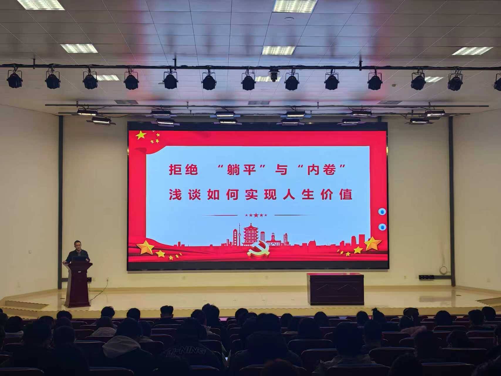 常务副院长王林以“从专业学习到使命担当”为题,结合学科前沿与国家需求,分析发展机遇挑战,鼓励青年学子将个人理想融入国家大局;学院副书记曹广祥教授以“拒绝‘躺平’与‘内卷’”为题授课,剖析相关心态成因,引导学生正确看待竞争合作,鼓励其在多元发展中实现人生价值。