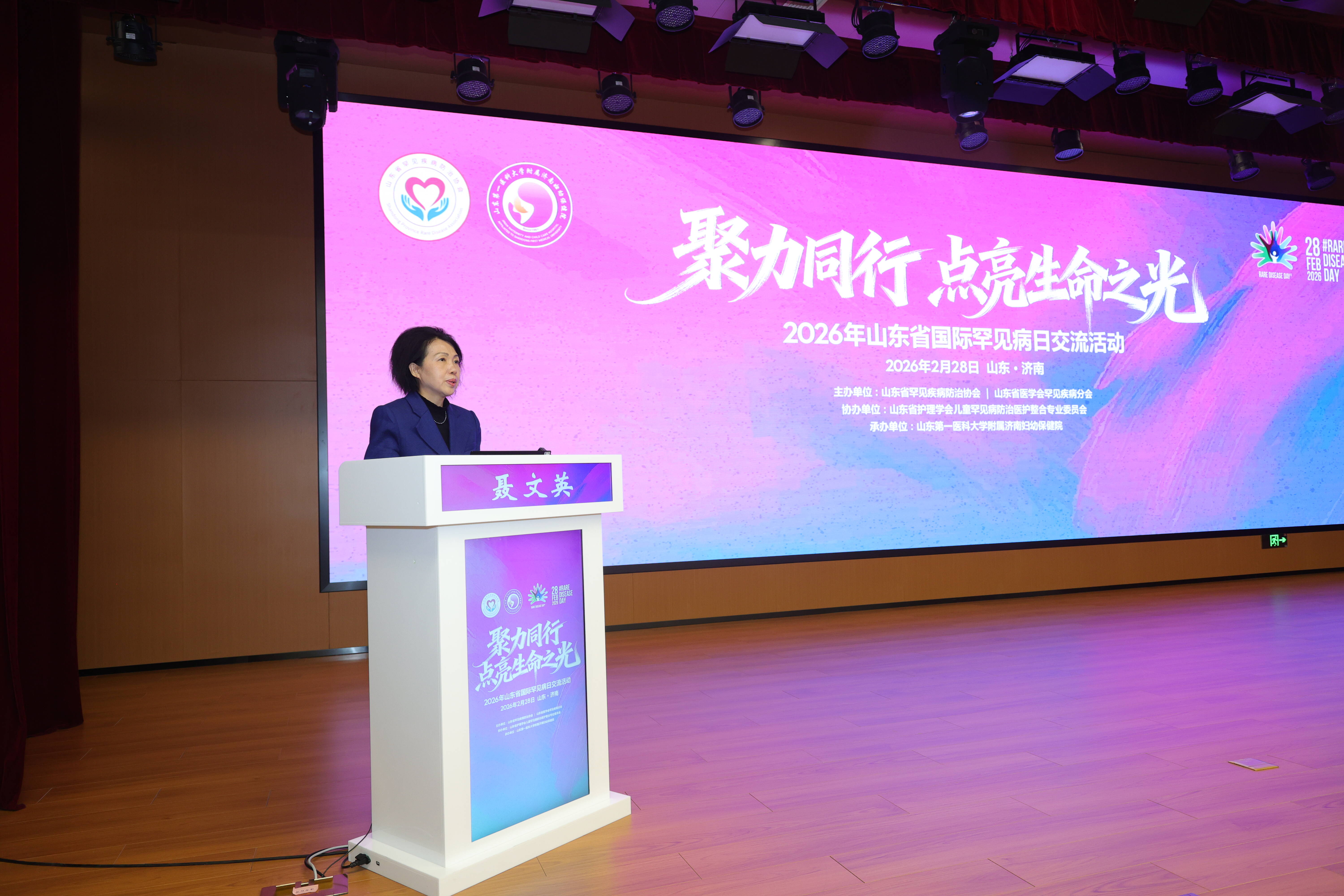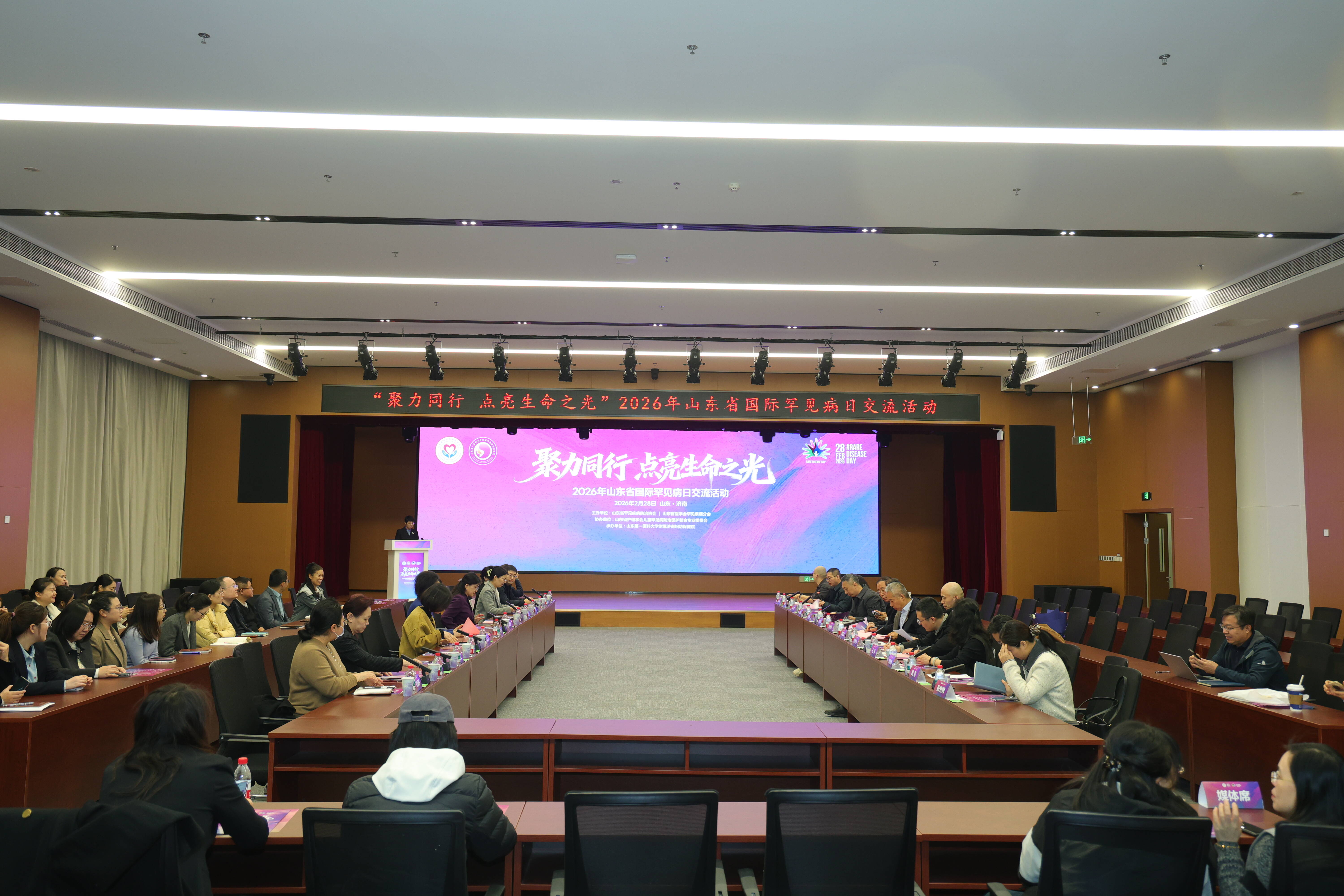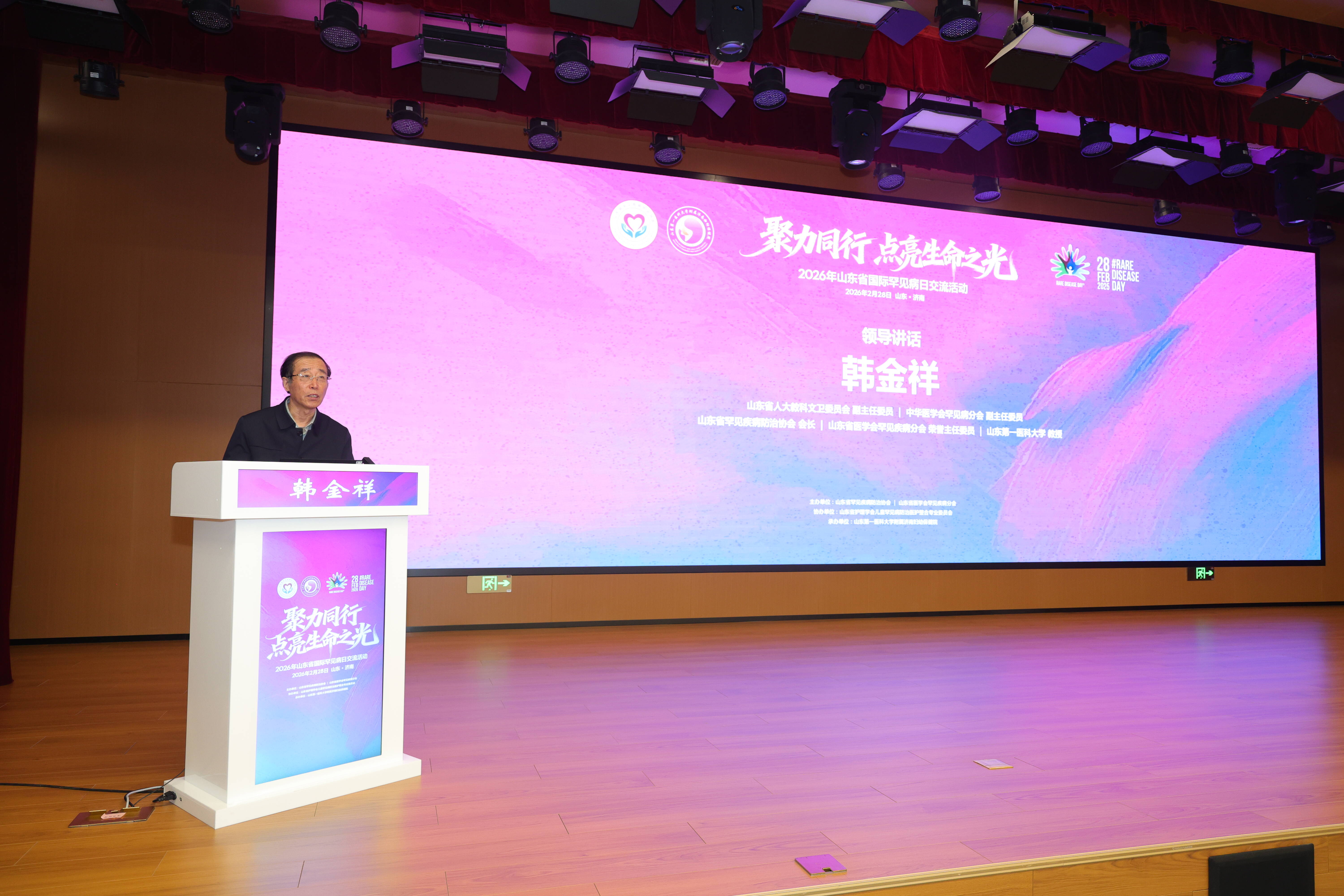 2月28日,第19个国际罕见病日之际,由山东省罕见疾病防治协会主办、山东省护理学会儿童罕见病防治医护整合专业委员会协办、山东第一医科大学附属济南妇幼保健院承办的2026年山东省国际罕见病日交流活动在济南举行。山东省人大教科文卫委员会副主任委员、中华医学会罕见病分会副主任委员、山东省罕见疾病防治协会会长韩金祥,山东中医药大学副校长、山东省医学会罕见疾病分会主任委员崔亚洲,济南市卫健委医政处副处长李宝杰,山东第一医科大学附属济南妇幼保健院党委书记聂文英及全省部分地市的妇幼系统工作者、国内外罕见病领域专家、学者及医务工作者齐聚一堂,共商罕见病防控体系建设,为"健康山东"、"健康中国"建设注入新动能。会议由山东第一医科大学附属济南妇幼保健院院长韩炳娟、副院长邹卉和山东第一医科大学生物医学科学学院常务副院长王林主持。