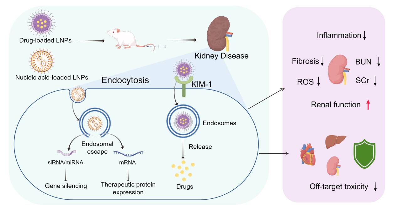 基于脂质纳米颗粒(LNP)的肾脏靶向治疗平台示意图