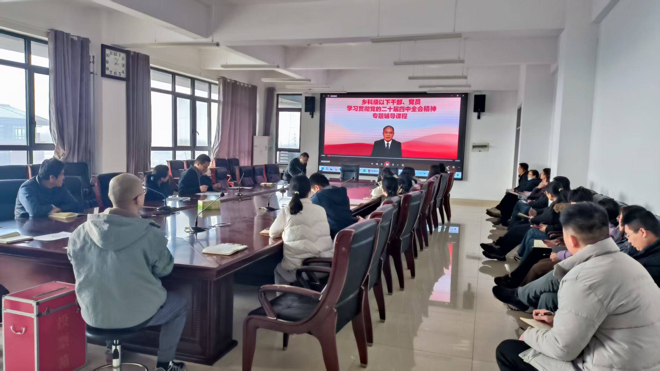 全体教职工集中观看灯塔大课堂第 71 期《十五五”时期经济社会发展的指导思想、重大原则和根本保证》,系统学习全会精神核心要义、“十五五”时期经济社会发展指导思想、重大原则与根本保证,进一步加深对国家发展战略与高等教育使命任务的理解把握,同时围绕全会精神与学院高质量发展规划开展交流研讨。